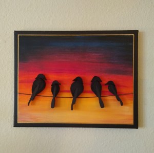 mixed media art canvas action birds piano string